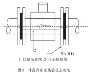 (1)傳感器在金屬管道上安裝(金屬管道內(nèi)壁沒(méi)有絕緣層),如圖5。