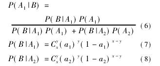 用C事件代替式(6)~(8)中的B事件,計算可得C發生的情況下A1的可信度為7.08%,即后驗概率為P(A1|C)=7.08%,P(A2|C)=92.92%。