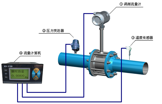 渦街流量計(jì)是以全新的設(shè)計(jì)理念,將溫度、壓力、流量信號(hào)集于一體,通過(guò)智能數(shù)字處理器將三種信號(hào)混合處理后輸出一個(gè)補(bǔ)償后的標(biāo)準(zhǔn)流量,從而實(shí)現(xiàn)了對(duì)氣體、蒸汽的溫壓補(bǔ)償功能。由于采用了智能一體化的設(shè)計(jì)理念,因此,凱銘渦街流量計(jì)具有結(jié)構(gòu)緊湊、安裝使用維護(hù)方便的特點(diǎn)。
