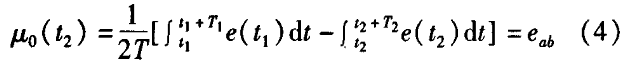 冷熱水流量計一般都采用工頻交流電源供電,其電源電壓的幅值和頻率的變化都會給冷熱水流量計帶來電源性干擾噪聲。對電源電壓的幅值變化,因采用多級集成穩壓,一般而言電源電壓的幅值變化對電磁流量的測量精度影響不大。當電源電壓的頻率波動時,雖然其波動范圍有限,但對冷熱水流量計測量精度影響較大。為了解決工頻干擾問題,實現對流體流速感應電勢e柚信號的準確測量,需利用以下基本關系:①勵磁周期為工頻周期的整數倍,即勵磁頻率為50/nHz(n為偶數);②正負勵磁下的同相位采樣。圖2是對應低頻矩形波勵磁形式下的典型電勢信號形式,按上述關系在一個勵磁周期下,若假設t。和t:點為工頻干擾的等效干擾點,且采樣寬度T=T1=T2,則e –ab的基本算式為:,