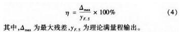 本文采用*小二乘法進行線性度評定,即擬合直線為*小二乘直線。*小二乘直線保證了傳感器至極輸出的平均值對它的偏差的平方和為*小,即可以保證擬合直線得到的結果與實測結果之間的偏差很小,更具可靠性。根據定義,線性度即是校準曲線對這條*小二乘擬合直線的偏離程度。