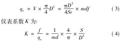 式中: D 為管道內(nèi)徑,m; m 隨發(fā)生體形狀不同而不同。瞬時體積流量 qv 為: