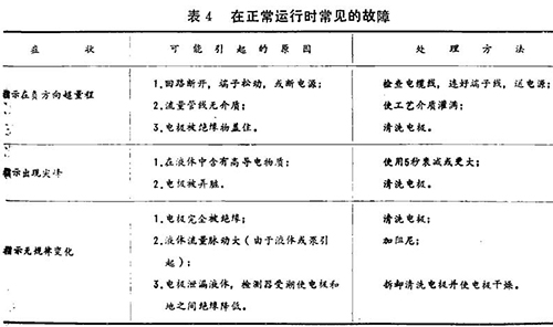 在儀表指示不正常時,可根據下面介紹的一些典型故障和處理方法進行必要的處理。這些故障可分為啟動時易產生的故障,正常運行時出現的故障和接地不良引起的故障(見表3、表4)。