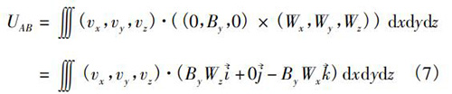 式中V為純水流量計(jì)傳感器測量空間;W→為權(quán)函數(shù)。在直角坐標(biāo)系(x,y,z)中,式(5)可以轉(zhuǎn)換為