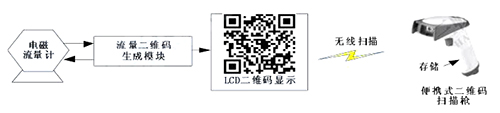 二維碼生成模塊定時向高壓電磁流量計發送采集指令,后者收到指令后發送流量數據。