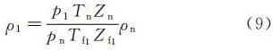 對于組分穩定的氣體,可用式(9)計算ρ1: