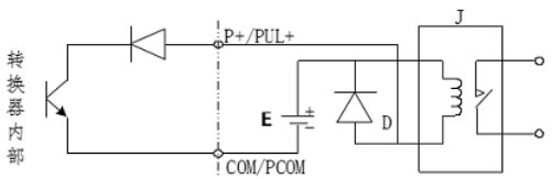 PUL+/ P+、ALM+(AH)、ALM-(AL)和 PDIR(FDIR)均為集電極開路(OC 門)輸出(參閱圖 3.6b、3.6d,用戶接線時必須參照如下電路外接電源和負載: