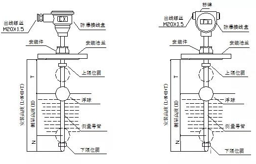 3、儀表須保持垂直安裝于浮球上下運動時不受妨礙的位置上,以保證浮球在主體管內能上下運動自如。