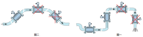 ⑾不同液體的混合介質,在混合點的下游,*小DN×30(DN為流量計公稱通徑),安裝流量計,否則顯示不穩定。
