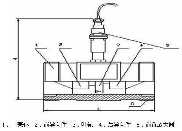 渦輪流量計由渦輪、軸承、前置放大器、顯示儀表組成。渦輪變送器的工作原理是當流體沿著管道的軸線方向流動,并沖擊渦輪葉片是,便有與流量qv、流速V和流體密度ρ乘積成比例的力作用在葉片上,推動渦輪旋轉。在渦輪旋轉的同事,葉片周期性地切割電磁鐵產生的磁力線,改變線圈的磁通量。根據(jù)電磁感應原理,在線圈內將感應出脈動的電勢信號(此脈動信號的頻率與被測流體的流量成正比)。渦輪變送器輸出的脈沖信號,經(jīng)前置與放大器放大后,送入顯示儀表,就實現(xiàn)了流量的測量。